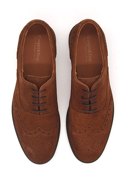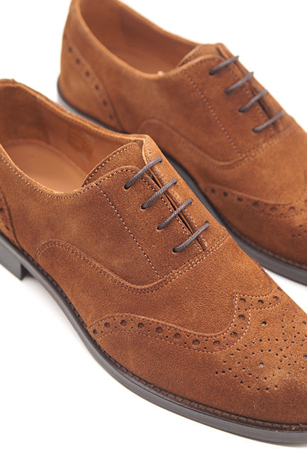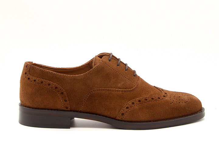 Modelo Oxford Brogue, Ante en Taupe, suela mixta.